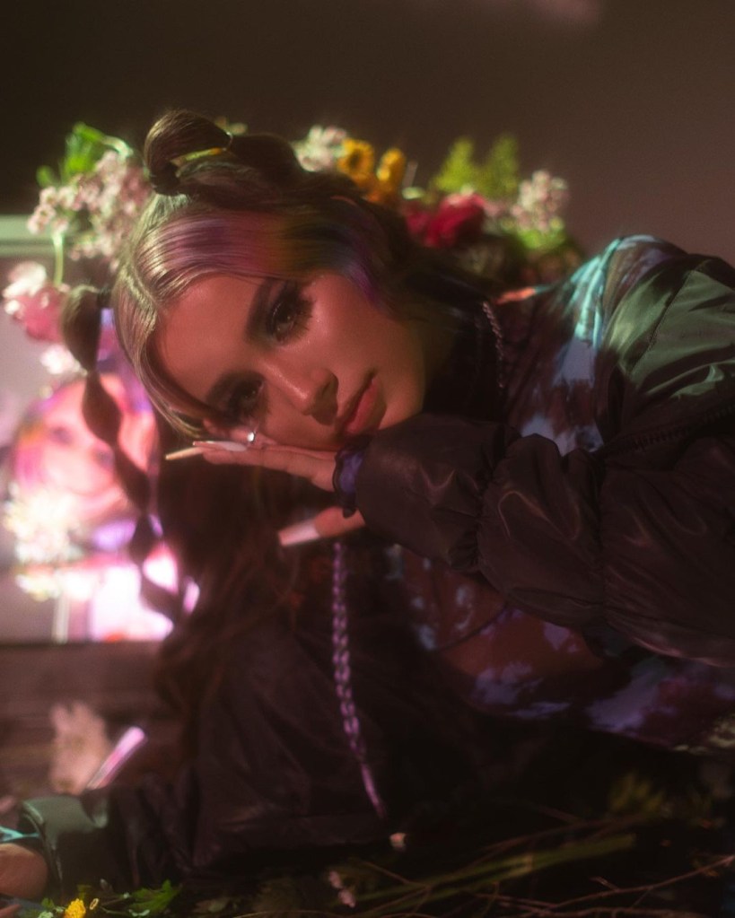 After taking time out from her busy schedule, 21-year old, bilingual pop star, ALAINA CASTILLO, appears on my Zoom screen wearing a lilac fleece that complements the rainbow streaks in her hair. I could already feel the sunshine and positivity radiating through my computer screen, transporting me from an overcast England to sunny LA. Castillo tells me how vital fashion is to her as a visual person: “Fashion is very important to me, it’s another way for me to express my creativity as well as through my music.” Although the pop star doesn’t have a particular muse, her effortless fashion sense perfectly matches the trippy and mesmerising quality of her music.